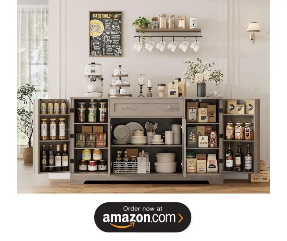 A sideboard-style buffet with adjustable shelves. Modern, functional, and perfect for organizing all essentials.