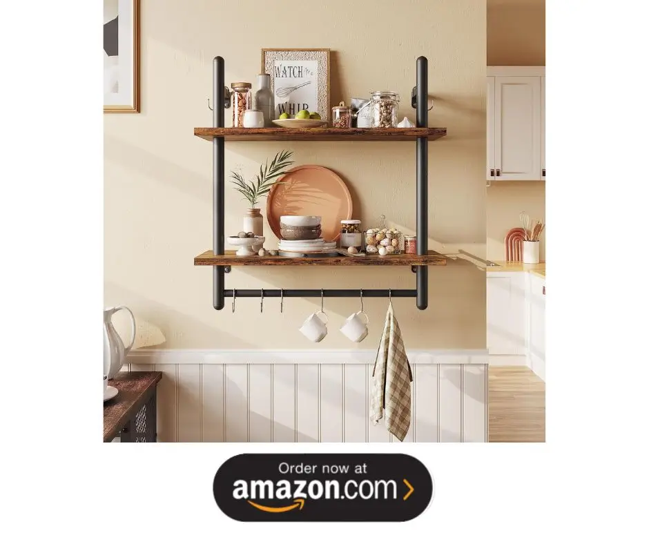 Keeps mugs organized while saving space, perfect for small shelves or farmhouse setups.