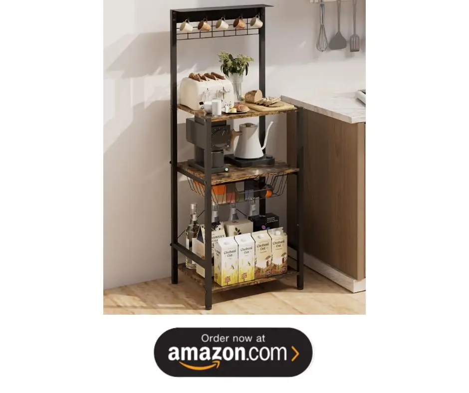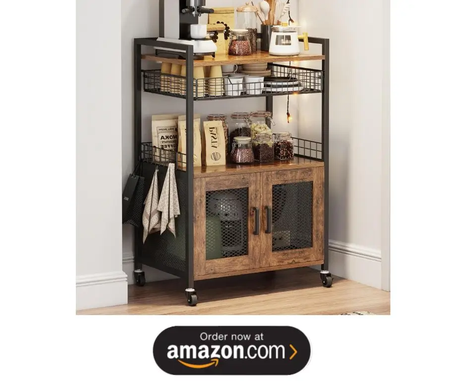 Adds rustic charm while providing storage for coffee supplies and décor.