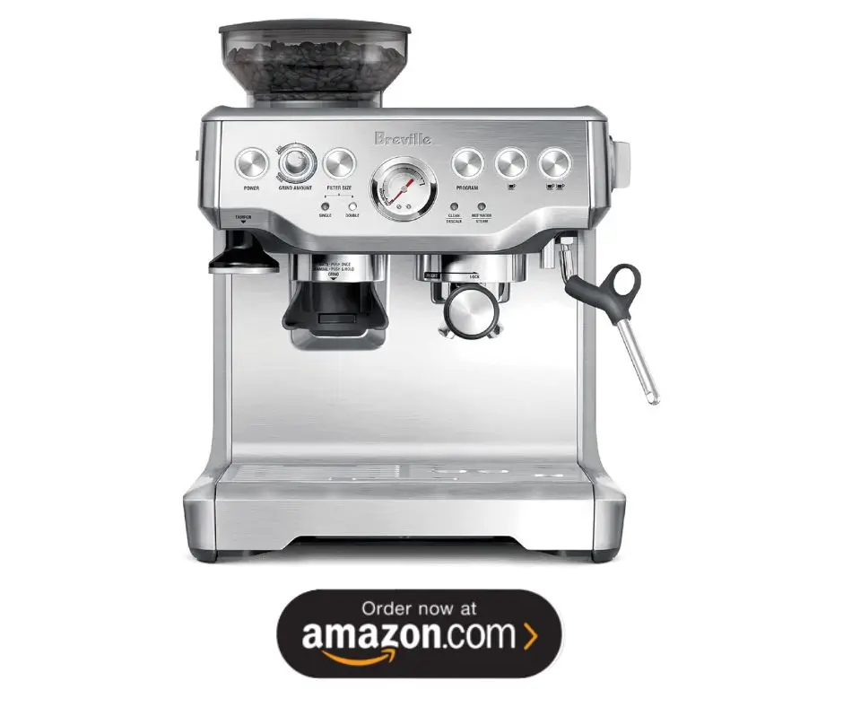 A semi-automatic espresso maker with built-in grinder—perfect for serious home baristas.