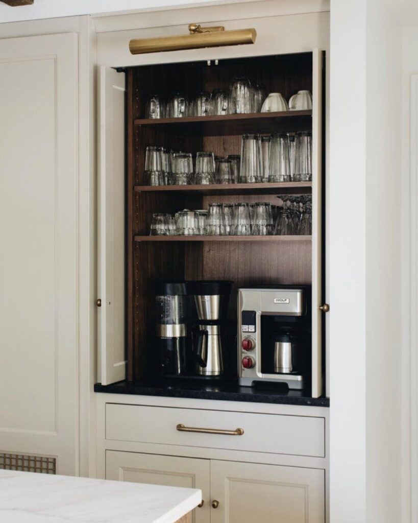 Carve out space within your pantry just for your coffee routine—functional and hidden.