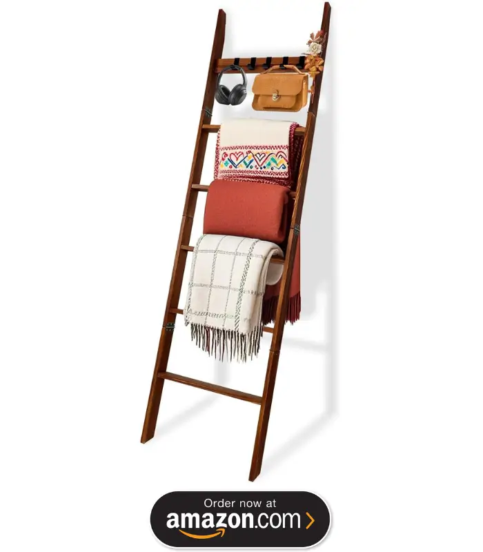 A ladder keeps blankets visible, which makes choosing one easy. It also encourages you to keep throws tidy because they are always on display. This improves the overall look of your living room or bedroom.
