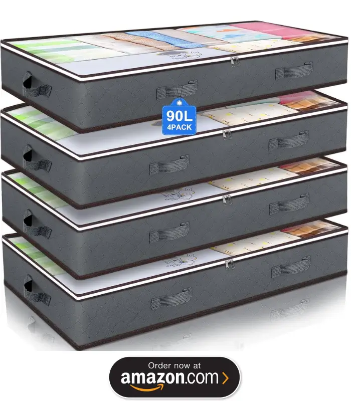 Under-bed bins also prevent blankets from being stuffed into crowded closets or overflowing drawers. They help you maintain a calm and organized sleeping space.