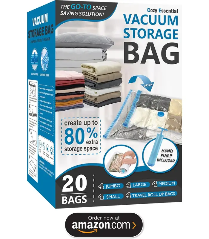 Vacuum-seal bags shrink bulky blankets so you can store more in a small space. They protect your bedding from dust, moisture, and pests, making them ideal for long-term storage.