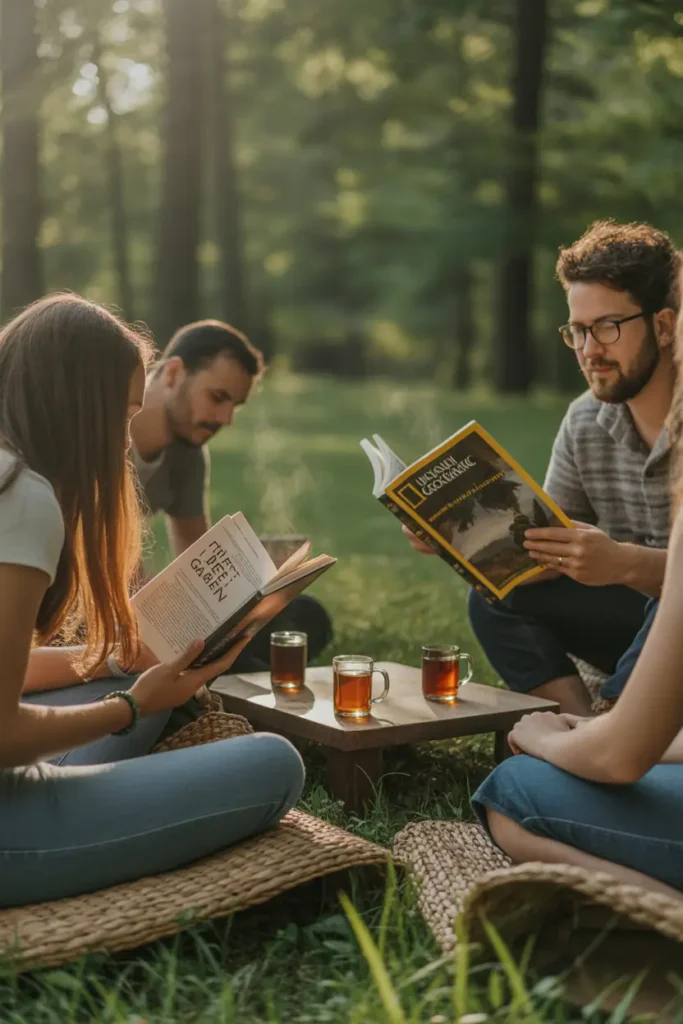 Invite guests to bring favorite books or magazines for a quiet shared experience. Some may read silently while others discuss stories they enjoy. Calm energy makes this idea perfect for introverts or small friend groups seeking peaceful time together. Reading outdoors feels refreshing and comforting, allowing people to unwind while still gently sharing companionship.
