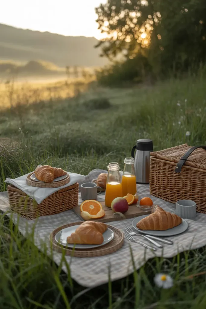 Morning picnics feel fresh and peaceful before the day becomes busy. Pack croissants, fruit, juice, and coffee for a gentle start outdoors. Cool morning air and soft sunlight create a calm atmosphere that feels almost magical. Conversations flow easily when everyone feels rested. This idea works well for friends who prefer quiet gatherings and want to enjoy nature before crowds arrive, making weekends feel longer and more meaningful.