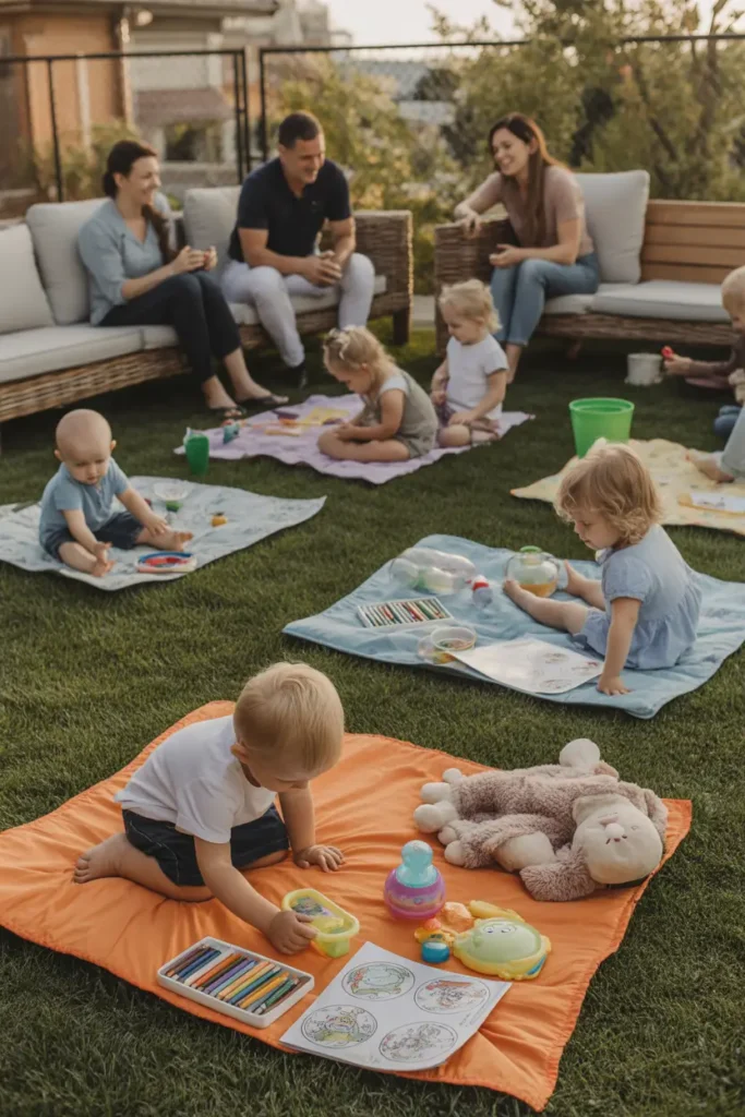 Create small activity areas for kids while adults relax nearby. Coloring books, bubbles, or soft toys keep little ones entertained without needing constant attention. Parents feel more at ease knowing children are engaged safely. Shared outdoor space allows families to bond naturally while still giving everyone freedom to enjoy the day their own way. Balanced gatherings like this feel welcoming and inclusive for all ages.