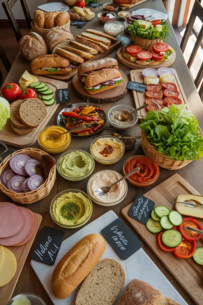 Prepare a variety of breads, spreads, vegetables, and fillings so guests can build their own sandwiches. Interactive food ideas make gatherings lively and personal. Everyone enjoys choosing flavors they like while chatting and laughing together. This setup also works well for different food preferences since each person creates something unique. Easy preparation combined with playful interaction turns simple meals into memorable shared experiences.