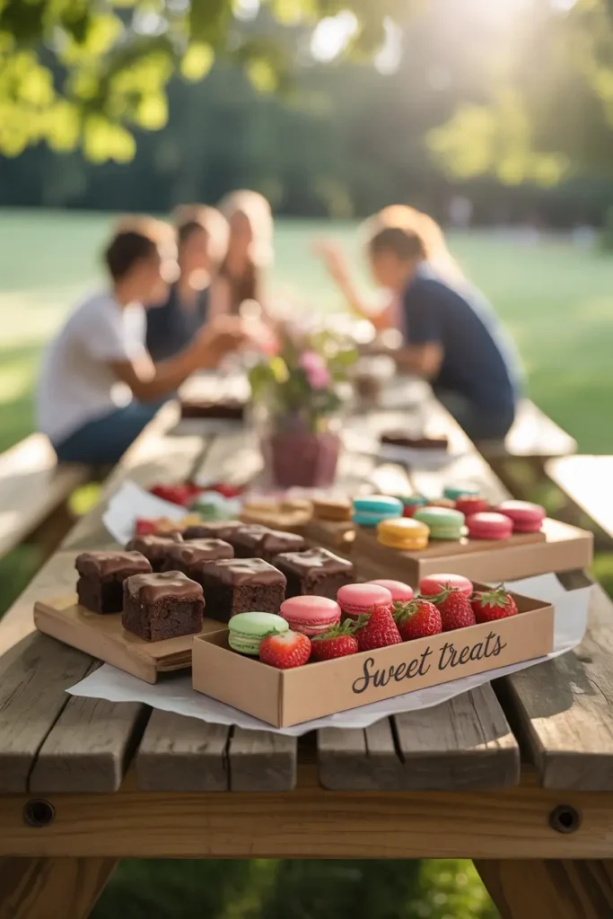 Sweet treats always add a joyful ending to any gathering without needing complicated preparation. Pack cookies, brownies, cupcakes, or sliced fruit that are easy to share. Bite-sized desserts feel casual and fun, allowing guests to snack while chatting or relaxing on blankets. Presentation can stay simple using paper boxes or small containers that travel well. Sharing desserts creates cheerful moments and often becomes the highlight of the picnic, bringing smiles and lighthearted conversations that make weekends feel extra special.