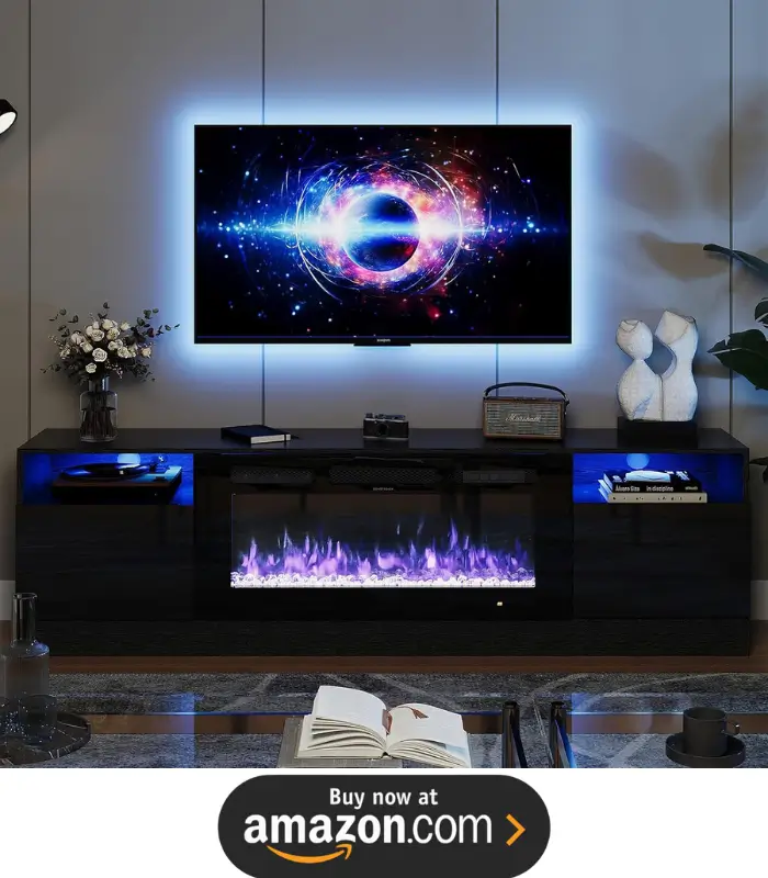 To style it, surround the fireplace with floating shelves, abstract artwork, or subtle backlighting for a dramatic effect. Wall-mounted models are also perfect for media walls — mount them beneath your TV for a balanced, modern look.