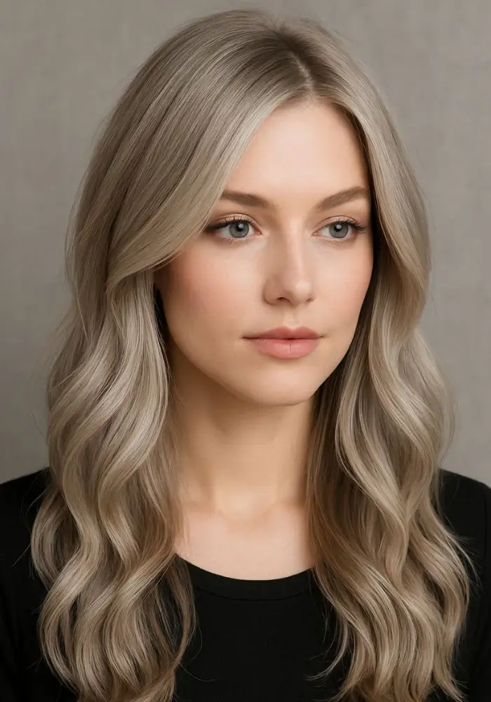 Wavy or layered cuts show off their dimension beautifully. Toning shampoos help maintain the icy look. Ash blonde is versatile for both casual and professional settings.
