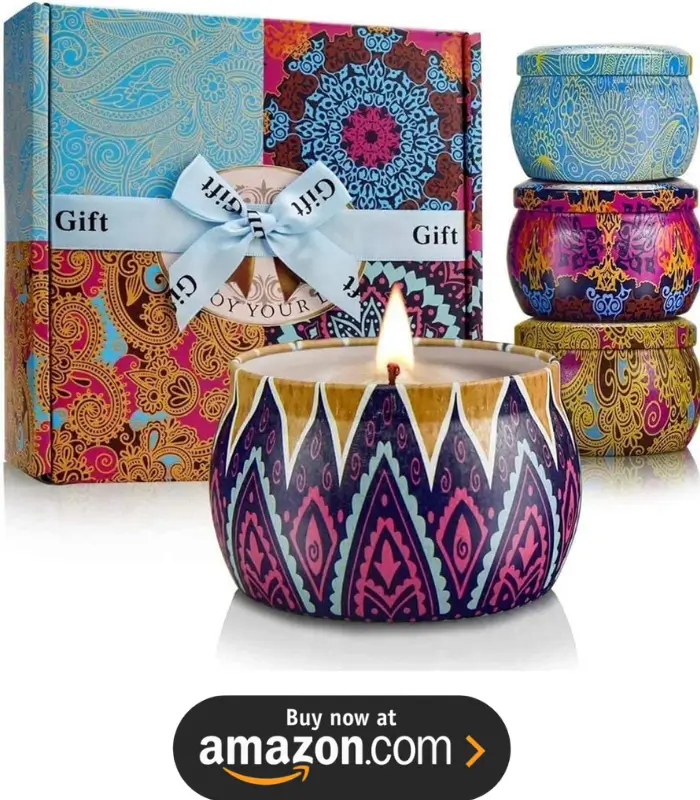 Add cozy scents like pumpkin spice, cinnamon apple, or caramel vanilla. Mini candles make boo baskets feel warm and thoughtful, especially when paired with self-care items or snacks.