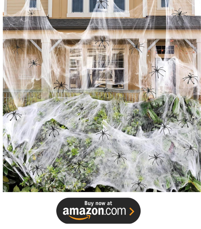 Stretchable and easy to use, spider web kits add instant spooky drama. Cover your porch railing, columns, or bushes to transform them into haunted corners. Many kits include plastic spiders or glow-in-the-dark webs for extra effect.