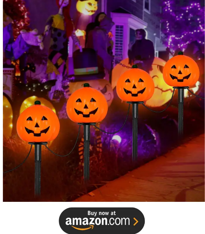 Add these decorative pumpkin-shaped lights along your walkway or flowerbeds for festive charm. Solar-powered options automatically light up at dusk, adding whimsical orange warmth to your outdoor décor. They pair beautifully with real pumpkins or rustic lanterns.