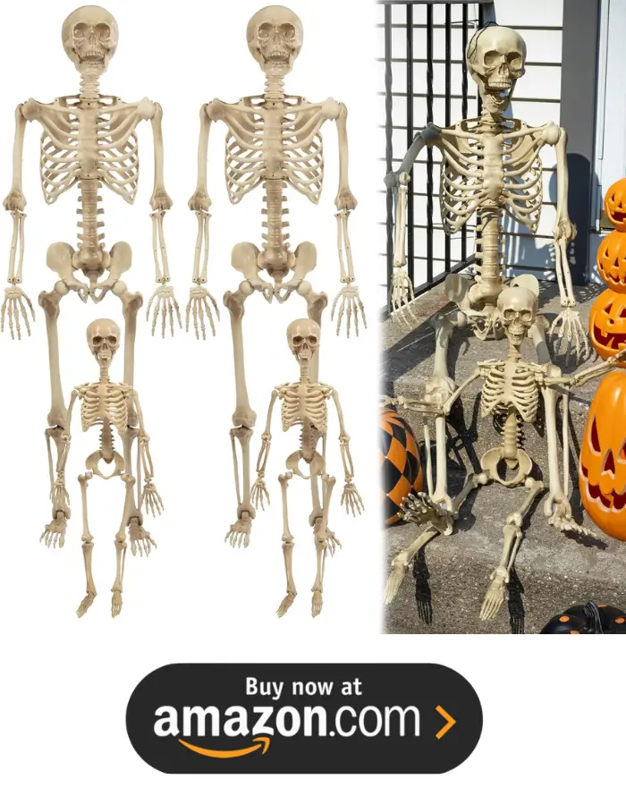 A Halloween favorite, these posable skeletons can be arranged however you like — sitting on chairs, climbing railings, or even greeting guests with candy. Durable and weatherproof, they’re reusable year after year. Add hats, scarves, or funny signs for a personal touch.