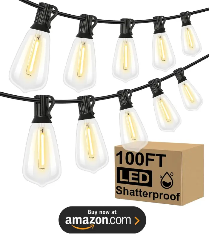 Use outdoor-safe materials — waterproof lights, resin décor, and treated wood. Keep electrical cords elevated and protected. Store soft fabrics like blankets or pillows indoors after use. Spray metal pieces with a clear protective coat to prevent rust.