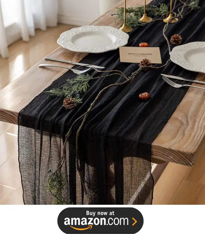 Absolutely! Blend pumpkins, leaves, and rustic elements with subtle spooky details like dark candles or black lace. This creates a seasonal transitional style, not over-the-top — perfect for enjoying your table setup beyond Halloween night.