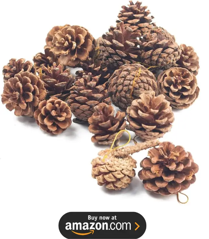 Rustic pinecone Christmas crafts resembling small festive trees.