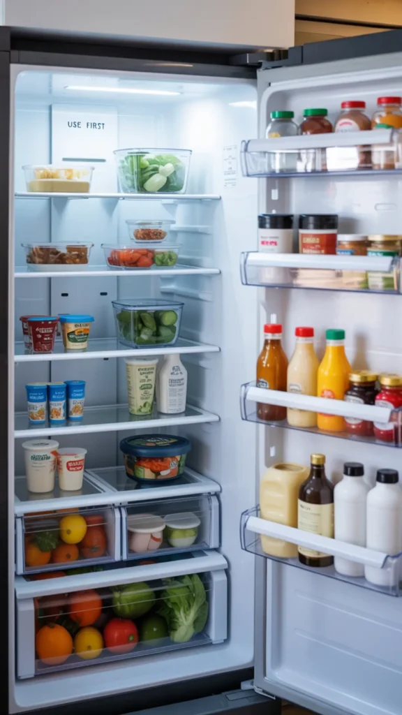 Start by tossing expired items and anything you know you won’t use. Wipe shelves and drawers, then group items by category: condiments, dairy, snacks, drinks, produce, leftovers. Your goal is visibility—not perfection. When you can see what you have, you use it before it goes bad.