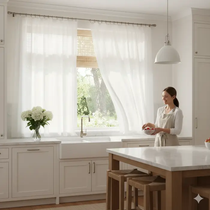 Sheer CurtainsBright, airy kitchensSoftens light, easy to layerLimited privacy