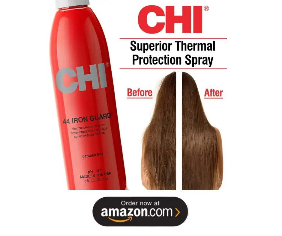 CHI 44 Iron Guard Thermal SprayHeat ProtectionPrevents damage, seals cuticle, protects vibrancy$ (Affordable)👉 Buy Now