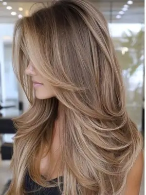 It complements medium to darker skin tones, adding vibrancy and glow. When paired with a balayage technique, it creates a natural “sun-lit” effect that looks effortless. Many celebrities choose this shade for its red-carpet appeal.