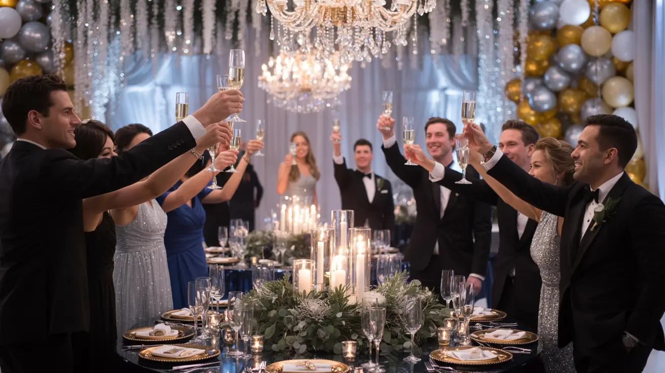 When the countdown begins, dim the lights, turn on sparkle lighting, and play a build-up song that creates excitement. At midnight, guests cheer, you share your kiss, champagne pops, and the dance floor erupts. This is the moment everyone remembers, so make it intentional and well-timed.