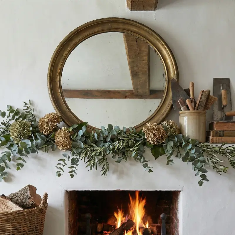 Add texture and life to your plaster mantel with this realistic eucalyptus garland. Battery-operated LED lights create a soft evening glow. Reusable year-round, it brings balance to sleek plaster finishes.