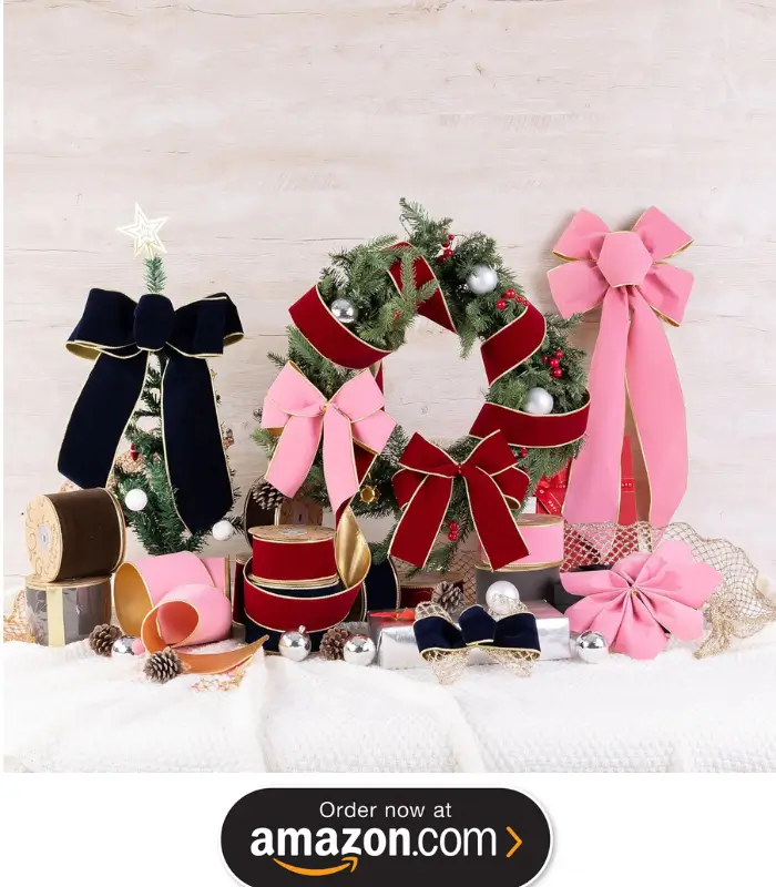 6 Ft Pre‑Lit Artificial Christmas Tree with Warm White Lights: The tree itself is foundational. Full branches and warm white lights provide the soft glow and depth needed for this style. With its full silhouette, this tree supports heavier ornaments and layered ribbons, maintaining a rich visual presence.