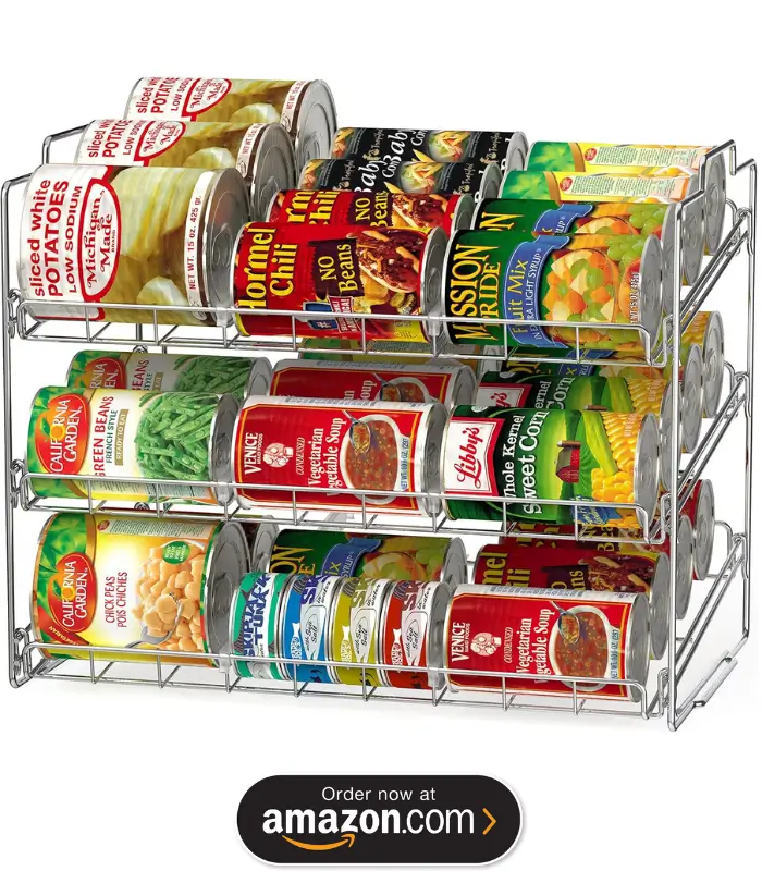 Stackable tiers multiply your storage capacity without crowding shelves. The sturdy frame keeps cans upright and secure. It’s ideal for anyone who stores large quantities of canned foods.