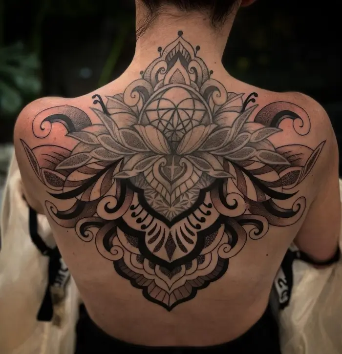 Geometric Back TattoosModern & BalancedMandalas, ShapesEasy to cover/showMedium