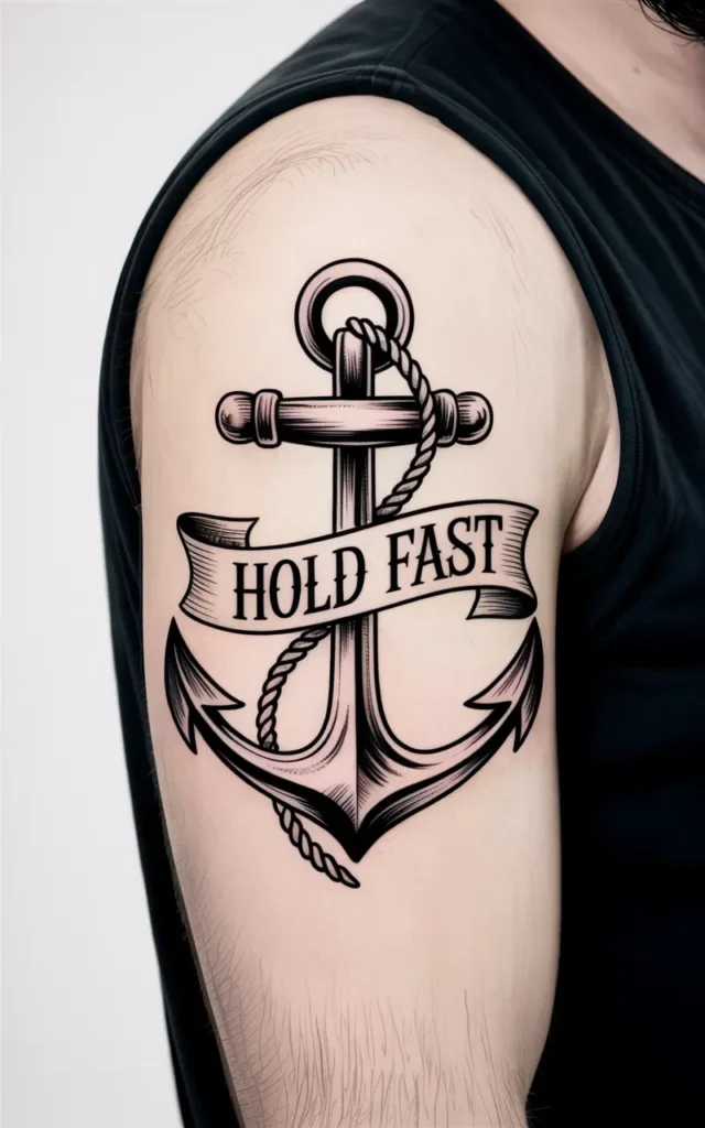 An anchor tattoo represents stability, grounding, and strength in turbulent times. Traditionally linked to sailors, the anchor now serves as a broader symbol of staying firm in life’s storms. It’s especially meaningful for people who have endured struggles and emerged stronger.