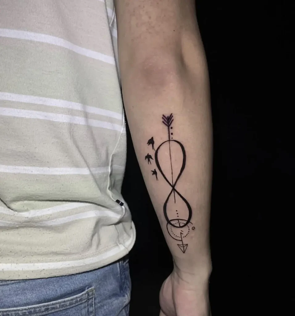 The infinity symbol tattoo represents eternity, endless possibilities, and unbreakable bonds. Often chosen by couples, friends, or family members, it symbolizes everlasting love and connection. Many people add names, feathers, or hearts to customize this timeless design.