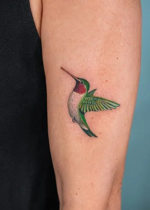 A hummingbird tattoo is one of the most elegant and meaningful tattoo choices. Hummingbirds symbolize energy, freedom, resilience, and joy because they are known for their vibrant colors, quick movements, and ability to hover in place. Across cultures, they represent hope, positivity, and the ability to overcome challenges despite their small size. For women, hummingbird tattoos often highlight beauty, grace, and strength, while men can symbolize perseverance and vitality. Whether designed in colourful realism or minimalist black ink, a hummingbird tattoo carries timeless symbolism and works well on almost any body part.